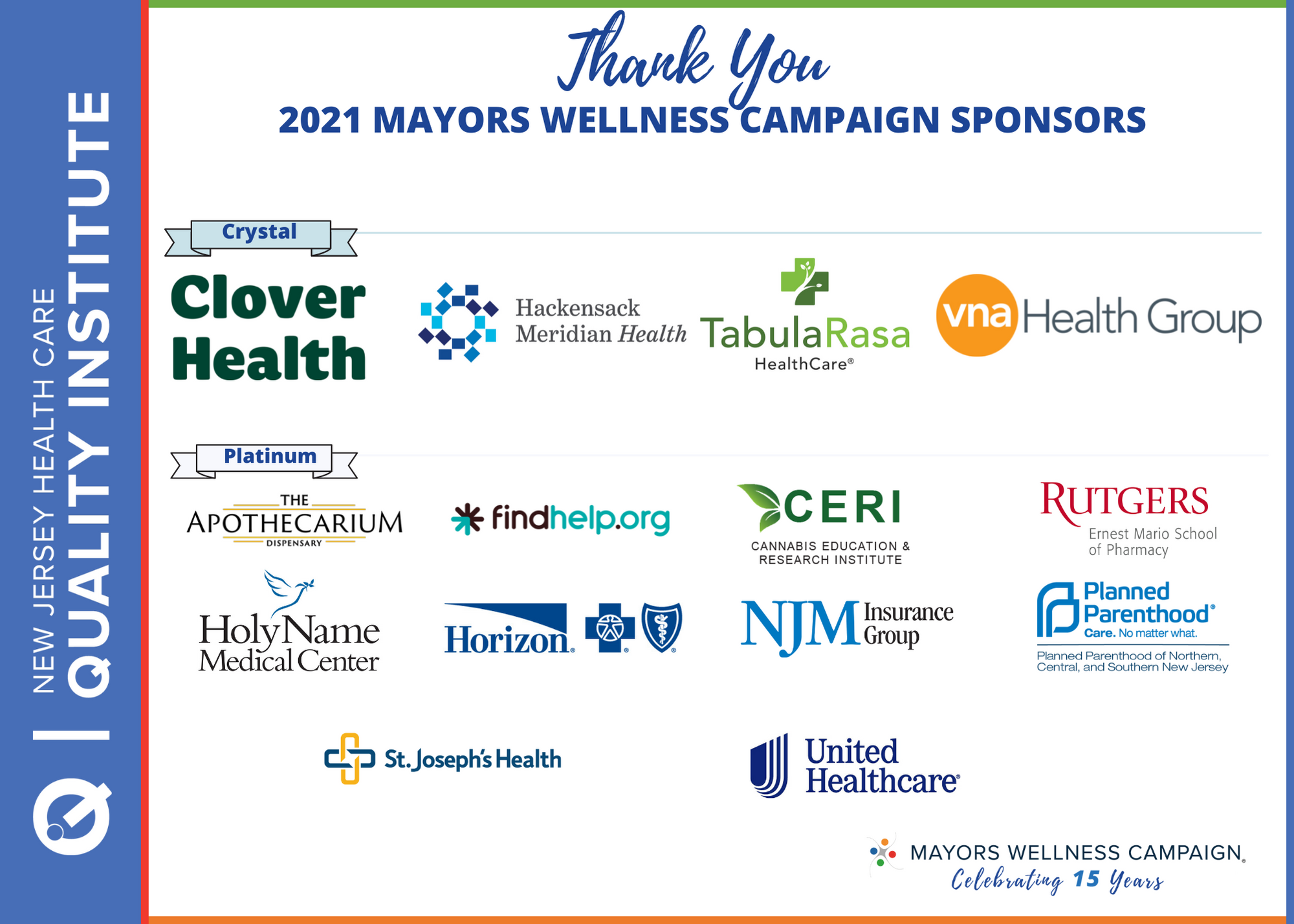 The Mayors Wellness Campaign is a program of the New Jersey Health Care Quality Institute in partnership with the New Jersey State League of Municipalities. The program empowers mayors across New Jersey with evidence-based tools, strategies, and support to champion health and wellness in their communities.